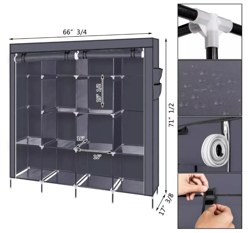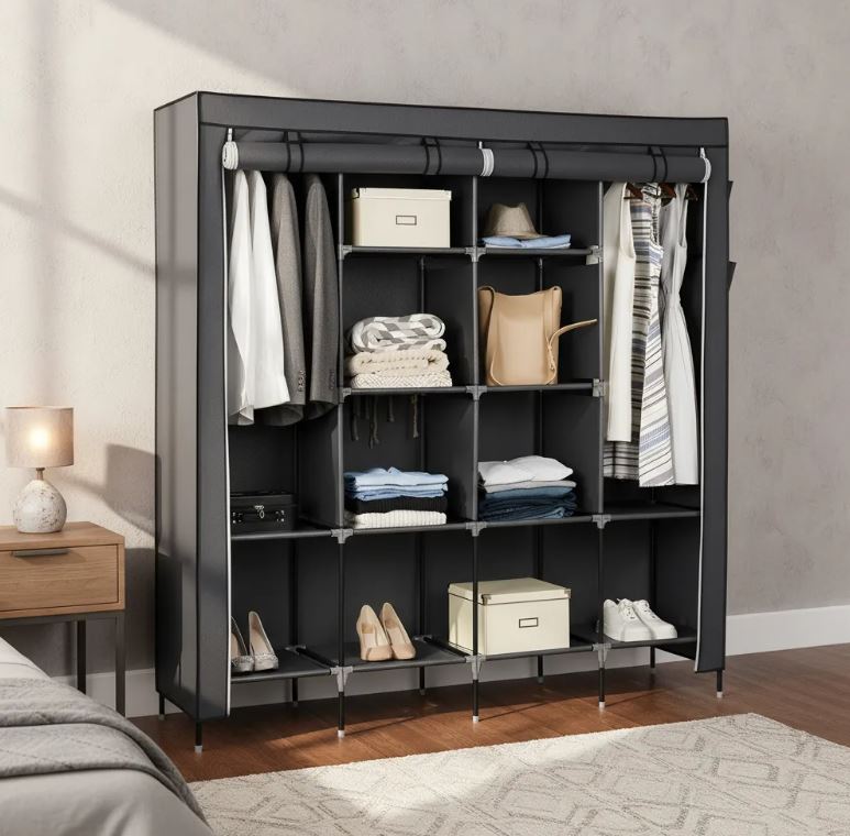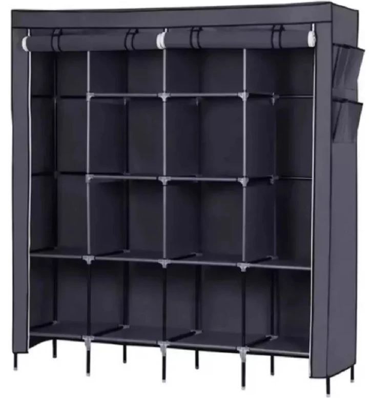 Fabricado con estructura metálica reforzada y tela no tejida de alta calidad, este clóset es fácil de armar, liviano y duradero, con compartimentos amplios para ropa colgada, zapatos, bolsos y accesorios.